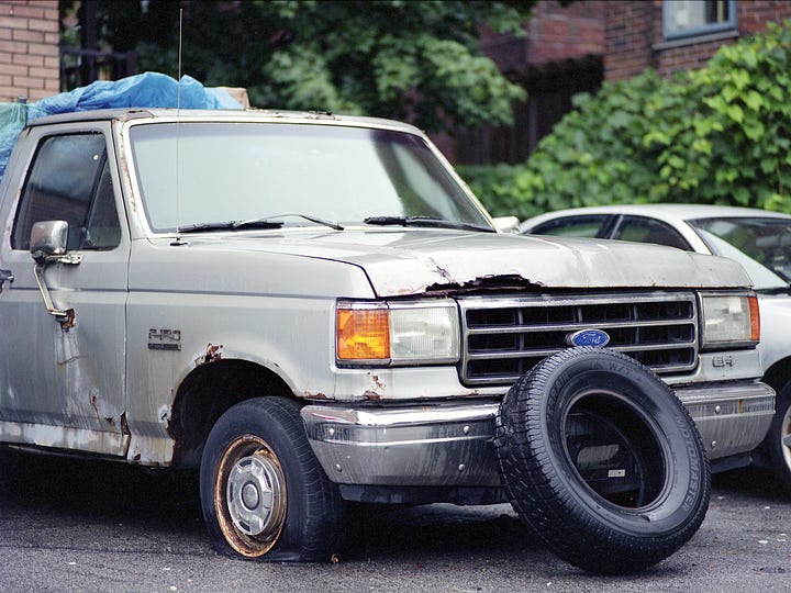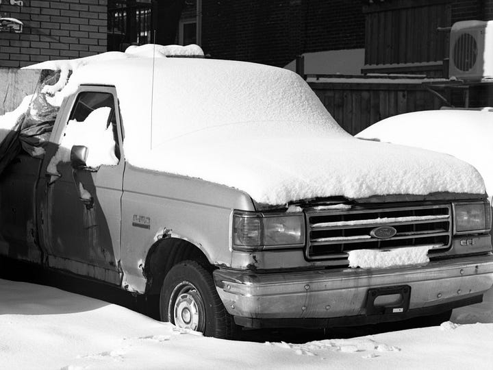 My favourite route for my daily walks was along Boulevard de Maisonneuve. The street is directly adjacent to three commuter rail lines, so good timing allowed me to see up to ten trains in less than an hour. As I walked down the street over and over again, I began to realize that many of the vehicles parked up against the apartment buildings never moved. I began to understand that the owners of the vehicles were likely victims of COVID. I had seen that run-down Ford pickup before, driven by an older man, picking up appliances and other valuable pieces of waste throughout the neighbourhood. But now the tires were decaying, and rust began to rapidly advance at the edges of the body panels.