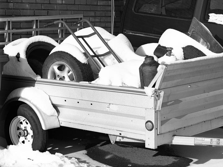 Once I realized the owners of the vehicles had probably died from COVID, I paid even closer attention. As far as I could tell, the Ford pickup and the trailer of tires never moved again, at least not until they were picked up by a junk collection company in 2021. I typically operate under a rule to never take photos of cars, but I felt that this situation deserved some documentation. There may have been no one else to remember their death.